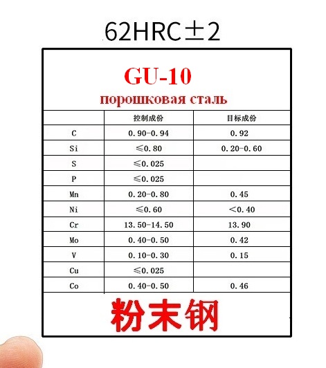 GU-10 порошковая сталь ( долго пытал китайца в июле 2025г., что это за сталь про которую я нигде не могу найти инфу?? - ответ один: "это порошковая сталь местного производства....") Короче - надо тестить))